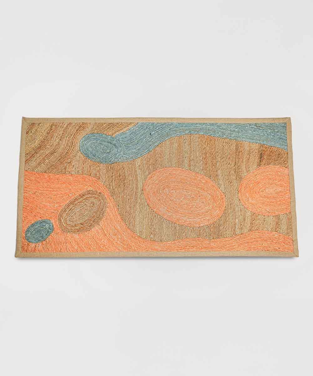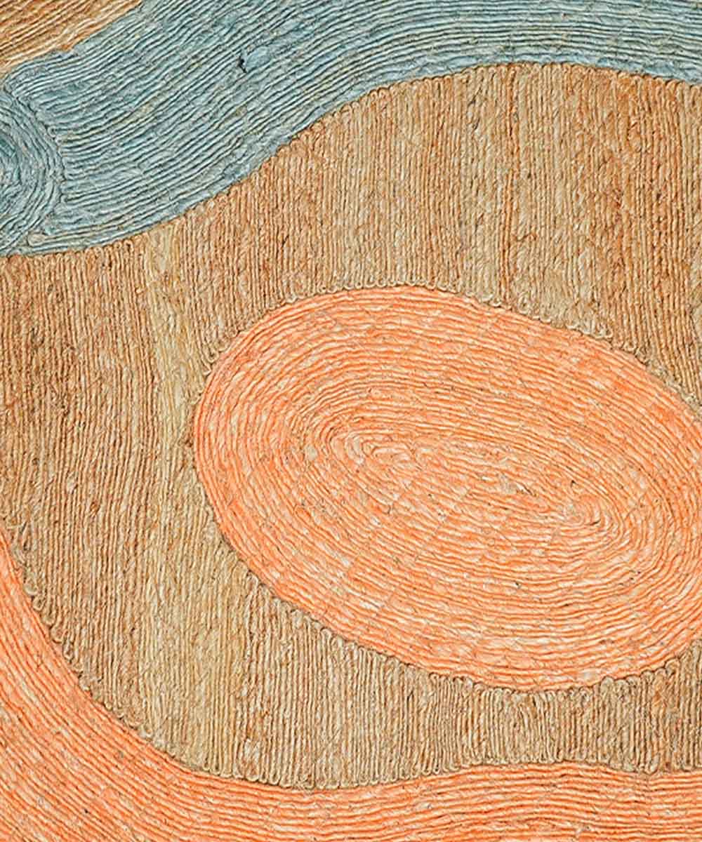 Coral & Sky Starry Currents – Art Weave Jute Rug | Handmade | 90% Jute 10% Cotton | 28×56 in