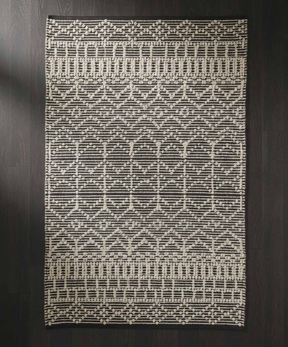 Its black-and-cream geometric pattern creates a raised, tactile texture that adds depth without overwhelming your space. Perfect for entryways, bedrooms, reading corners, or layered under accent furniture, this 3 x 5 ft rug elevates any room with its clean, contemporary aesthetic. Long-lasting, easy to maintain, and rich in visual character — it’s a statement piece that feels both modern and cozy.