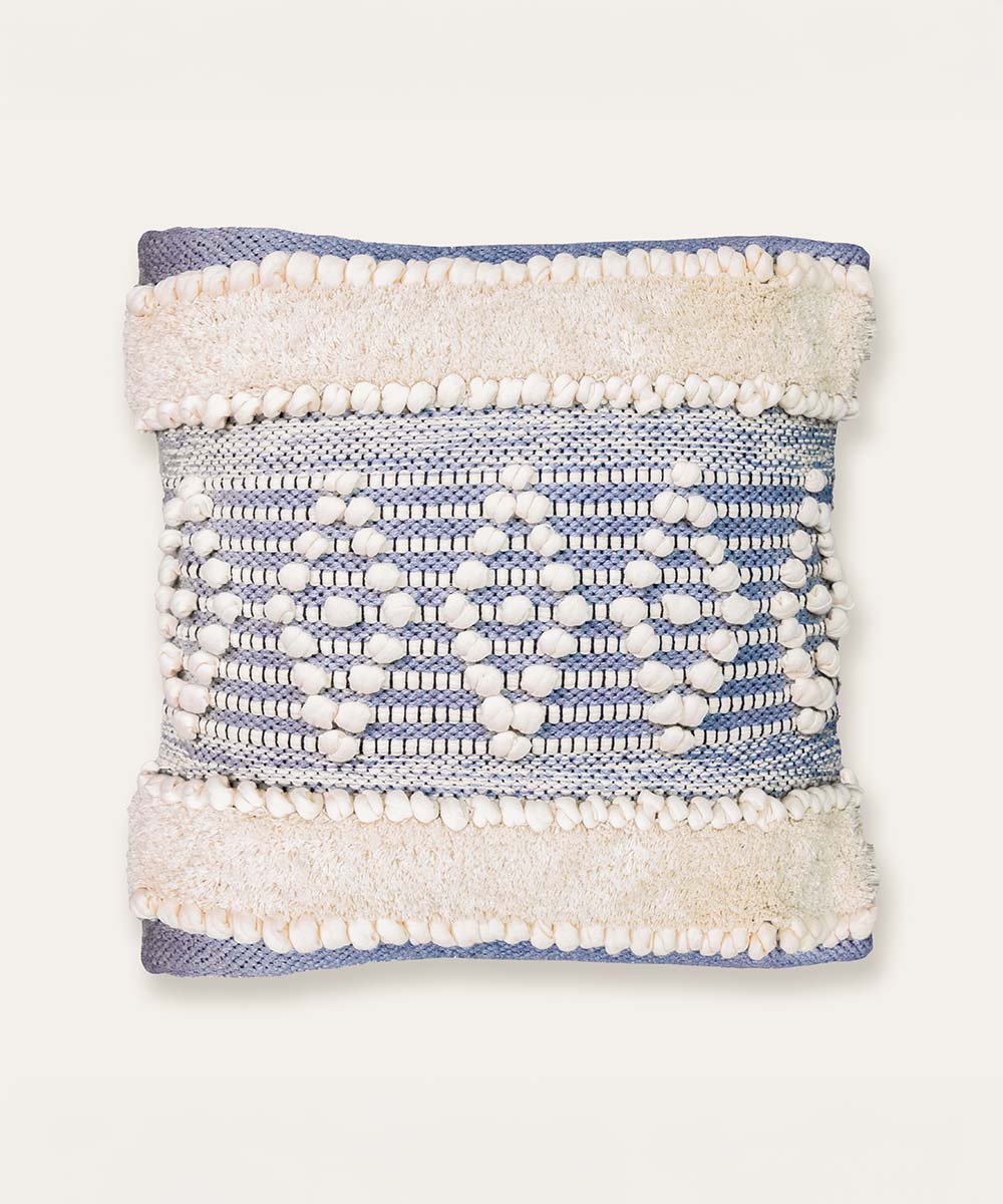 Mira Hand Tufted Bands Geometric Cushion Covers | Mist Blue| 16x16